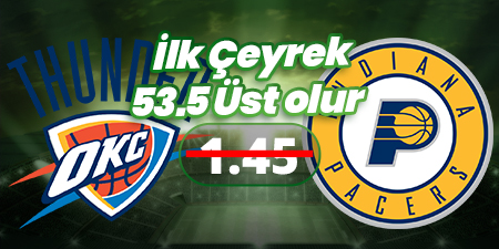 İlk Çeyrek 53.5 Üst olur06 Haziran 03:35Oklahoma City Thunder - Indiana Pacers