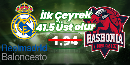 İlk Çeyrek 41.5 Üst olur03 Haziran 20:00Real Madrid -Baskonia