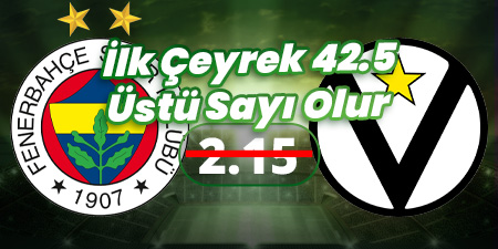İlk Çeyrek 42.5 Üstü Sayı Olur25 Kasım 20:45Fenerbahçe - Virtus Bologna
