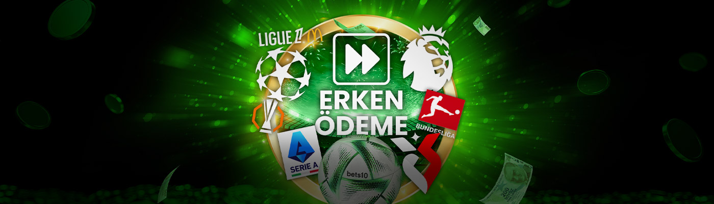 Süper Lig, Premier League, La Liga, Serie A, Bundesliga ve Ligue 1’in yanı sıra Şampiyonlar Ligi ve Avrupa Ligi’nde bahis oynadığın takım iki farkla öne geçtiği an Erken Ödeme al!